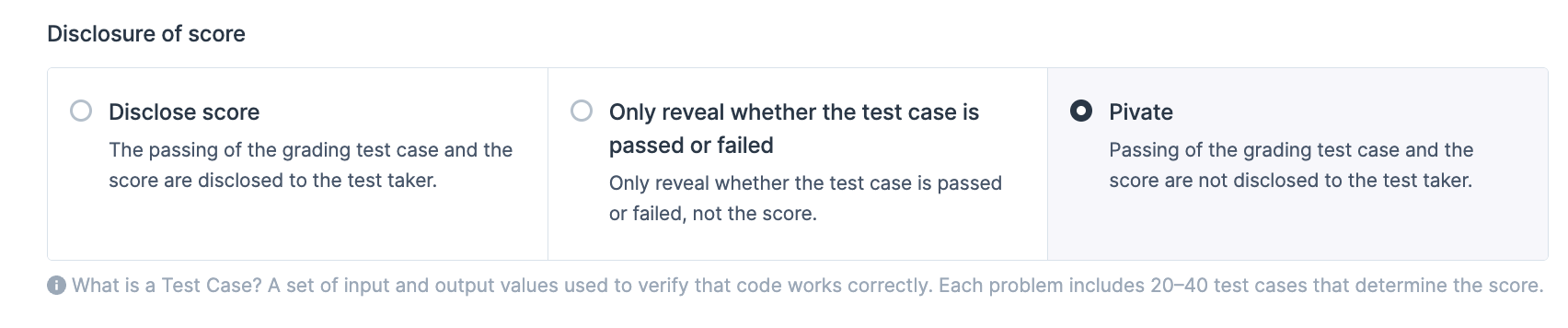 You can decide whether to show their scores and whether each test case passed.