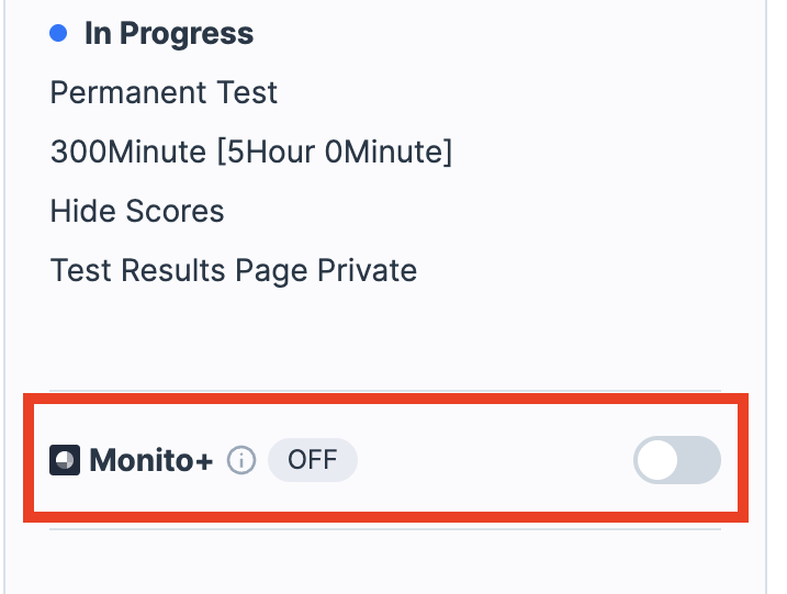 Monito+ can be enabled quickly from the right-side menu on the Test Management page.