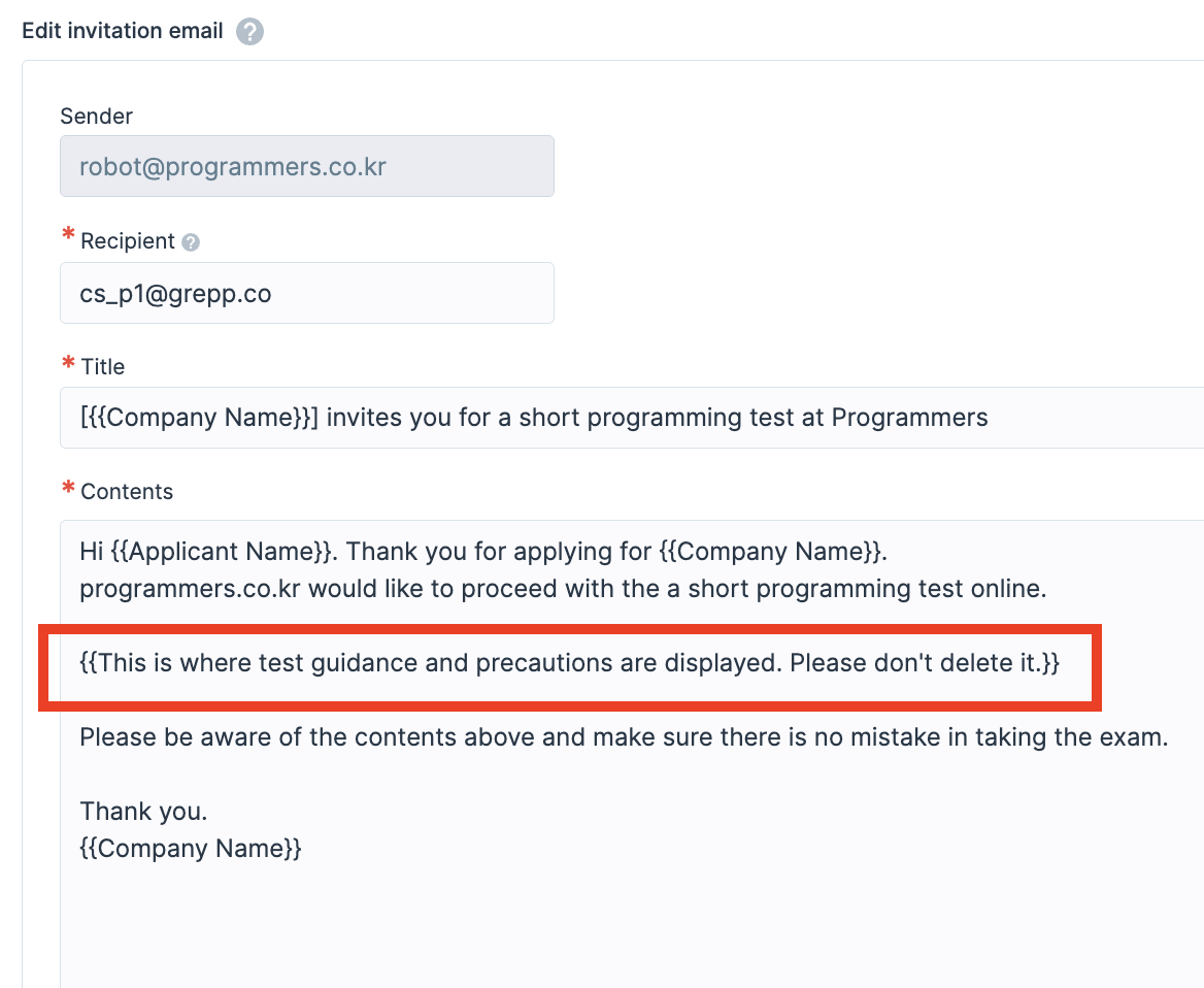 For other available key values, click the question mark icon next to “Edit Invitation Email.”