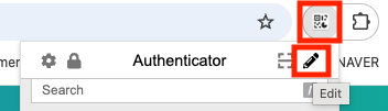 Click the QR code icon on the right side of the address bar to open the authentication extension.