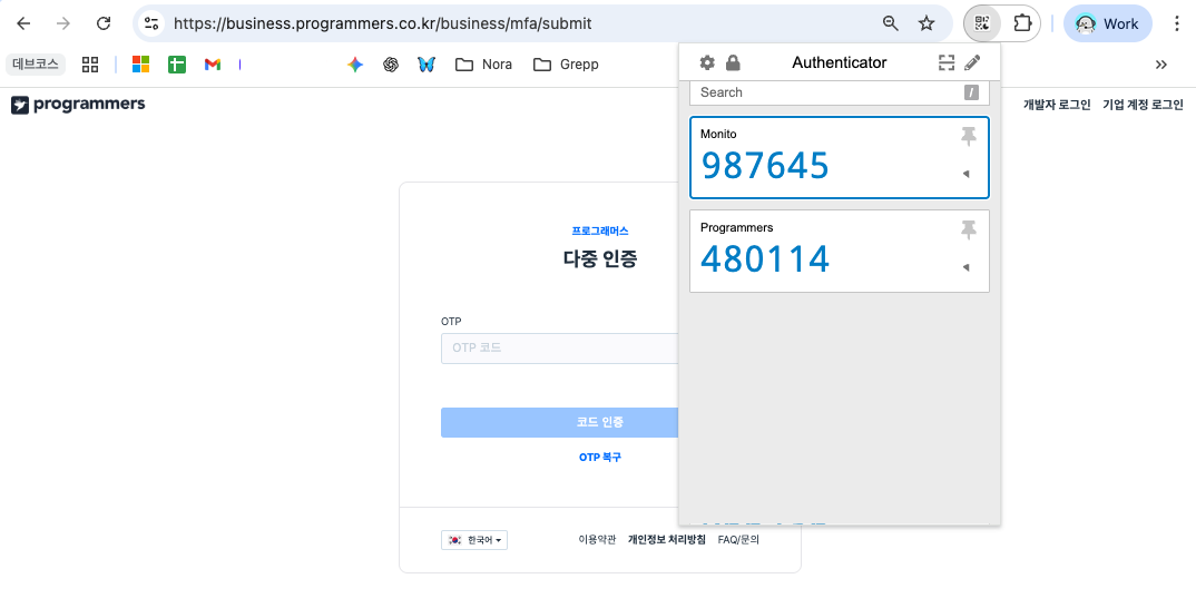 If you find mobile authentication cumbersome, try registering your OTP in Chrome Browser.You can check the authentication code directly in your browser without using an app — making the process much simpler.Our team also uses this method frequently.