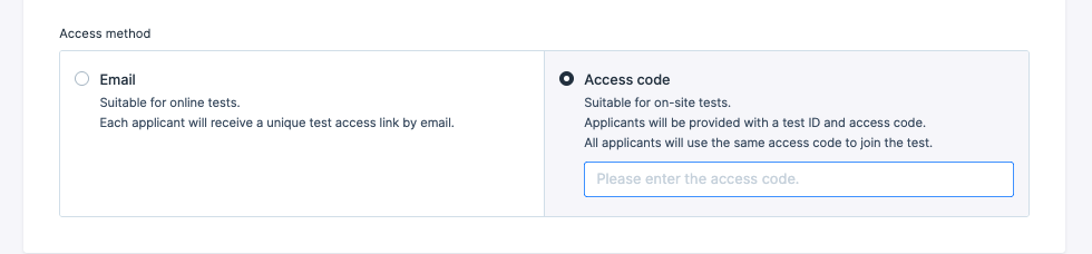 You can choose the access method when creating a test.