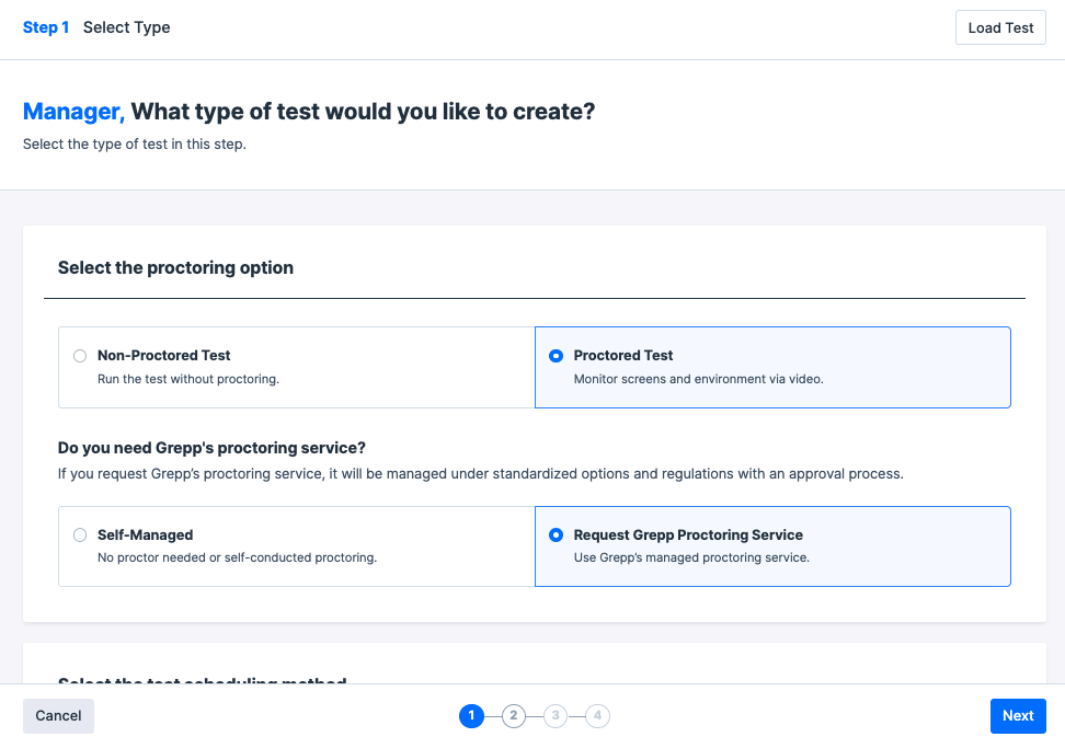 You can now submit proctoring delegation requests directly during the test creation stage, without contacting a sales representative.