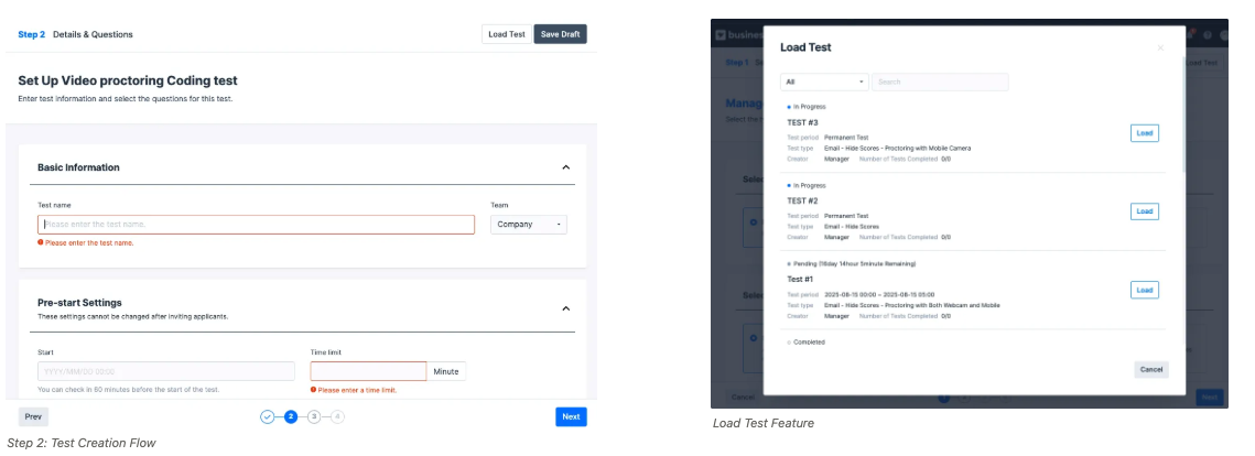 The test creation interface has been redesigned to better follow a step-by-step process. Options and test settings are now grouped by function, making it easier for first-time users to create tests without confusion.
