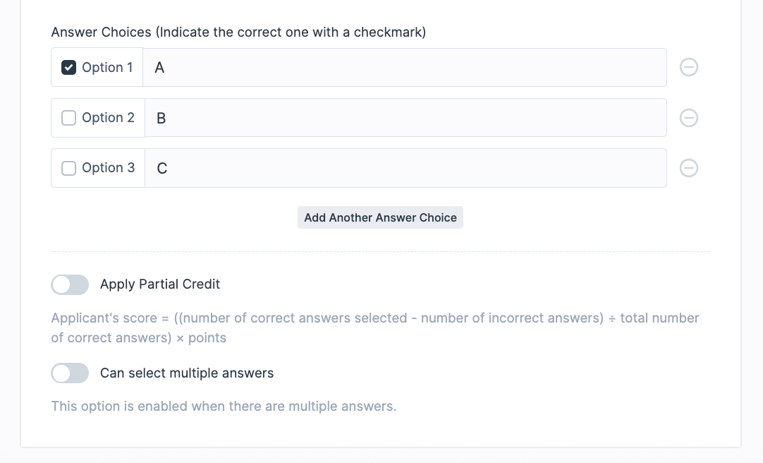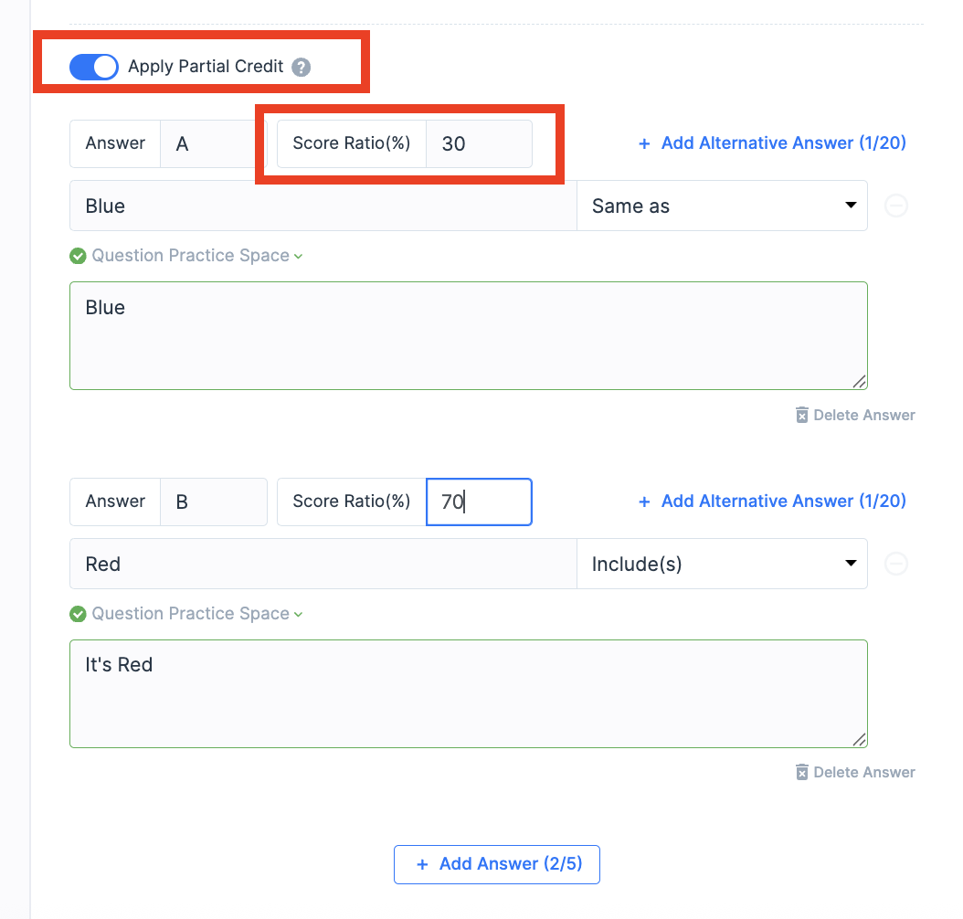 If there are multiple correct answers, you can enable the Partial Scoring option to allow partial points.