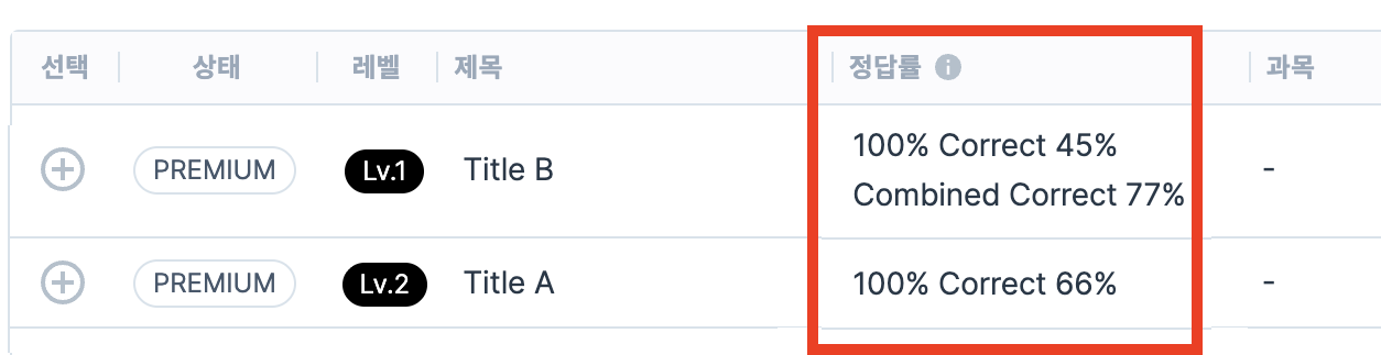 The correct answer rate is also available when selecting test questions or browsing the question list.