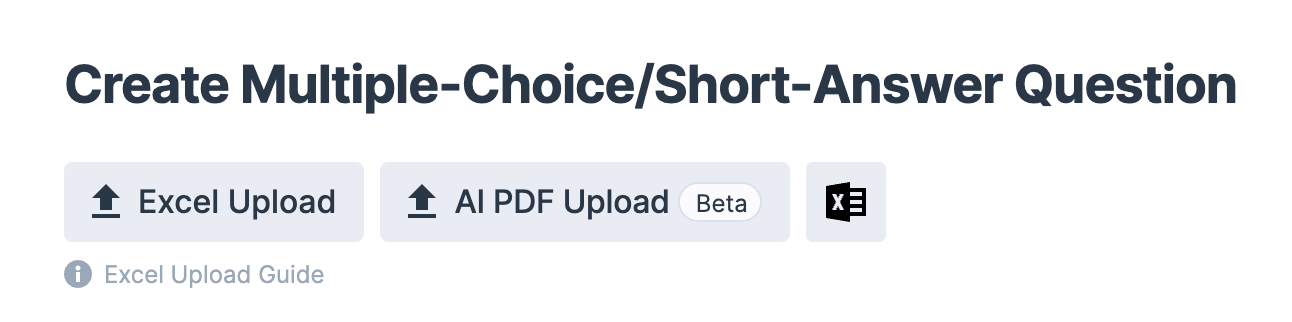 Excel File Upload Guideto view detailed instructions and download a sample file with the proper format.Note: For multiple-choice questions, the number of answer choices must be the same across all questions in a single Excel file.