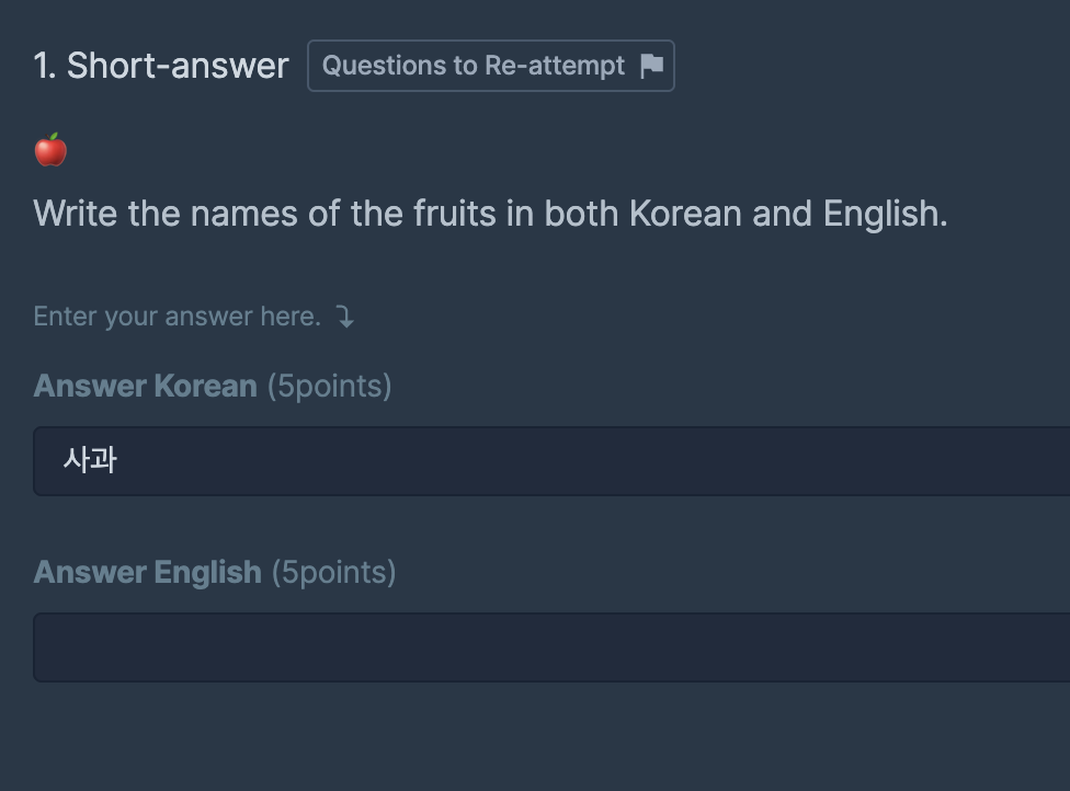 Multiple short answers question (formerly called “Multiple Subjective Question”)
