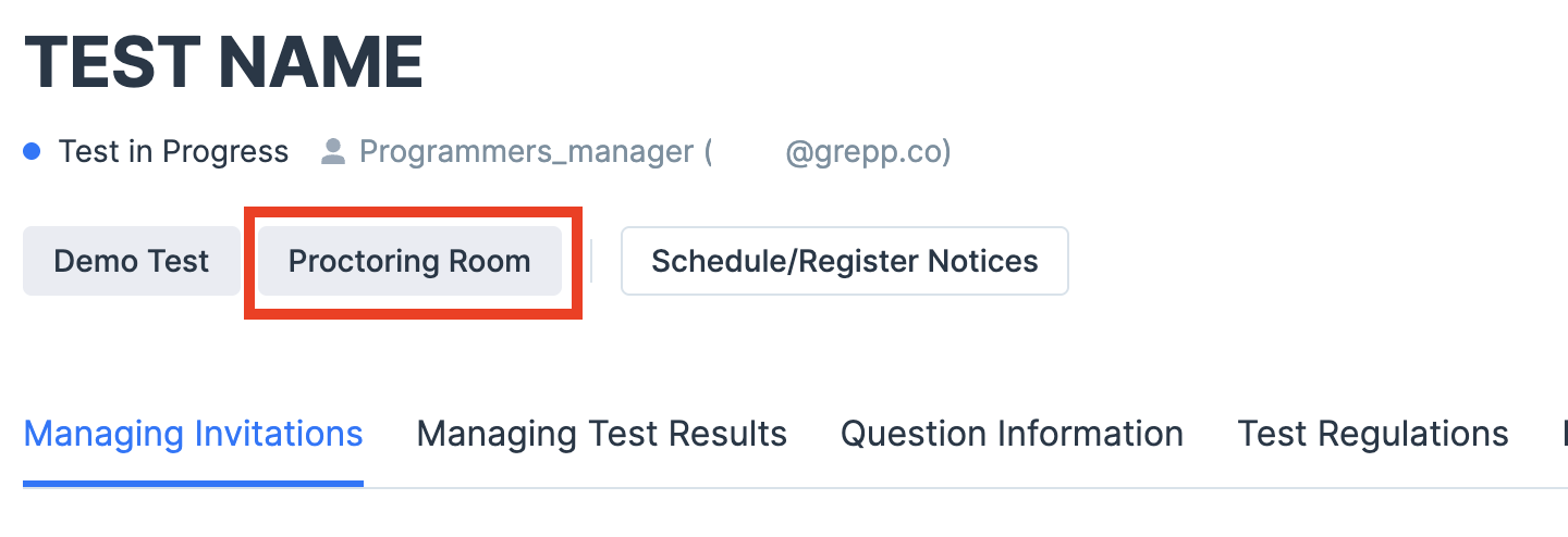 Proctoring Roombutton at the top of the test management page.