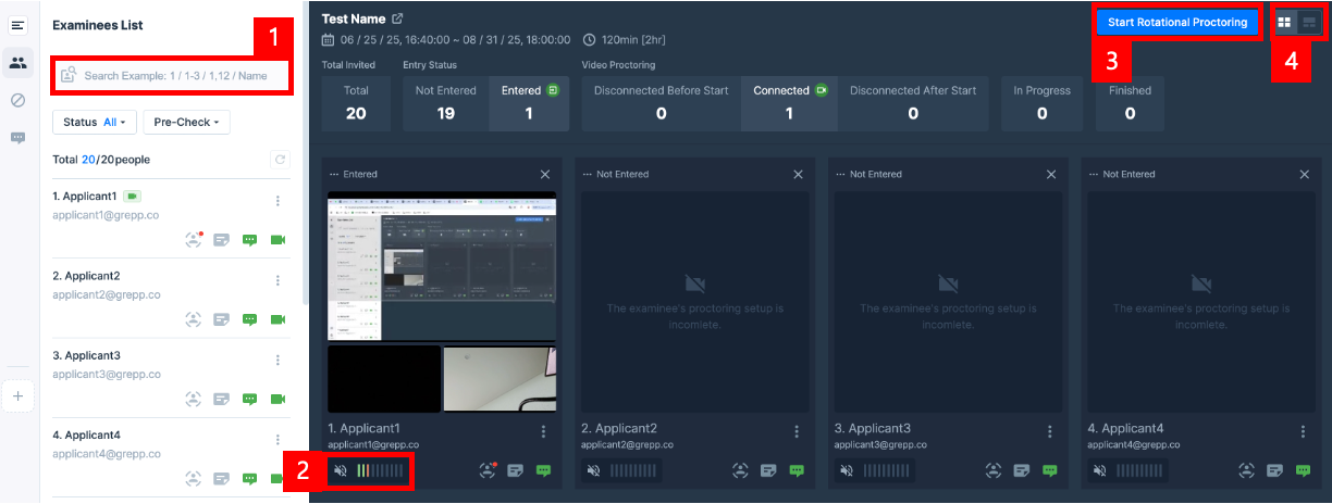 Start Rotational Proctoringbutton.Search for and add test takers to monitor.