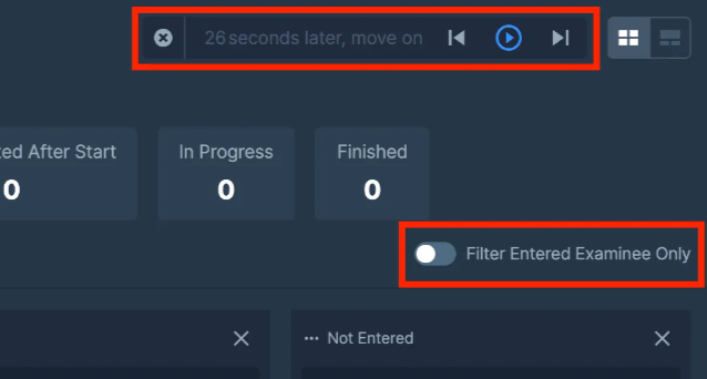 Filter Entered Examinee Only: Displays only test takers who have completed check-in.