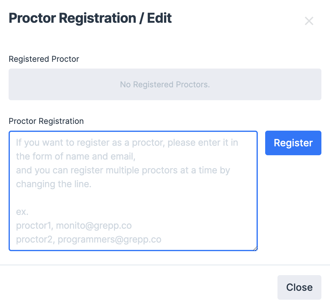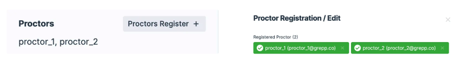 Example) Proctor1, test1@grepp.co Proctor2, test2@grepp.co