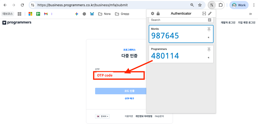 If you prefer not to authenticate via mobile, you can use your browser to check OTP codes instead.