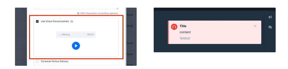Schedule AnnouncementClick the calendar icon (🗓) → Set the date and time → Click