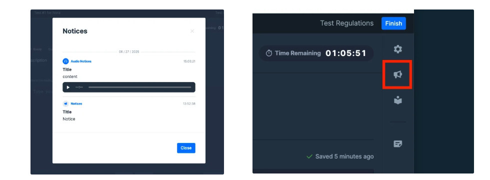 Once registered, the announcement will appear immediately at the bottom right of the test takers’ screens.