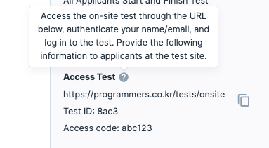 Test takers can access the test by entering their name, email, Test ID, and Access Code via the test URL.