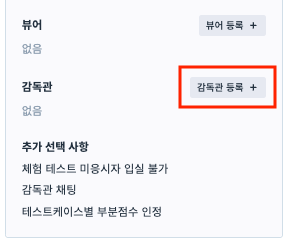 감독관 등록이 필요한 테스트 관리 페이지 우측 메뉴 하단의 감독관 등록 + 버튼을 클릭합니다.