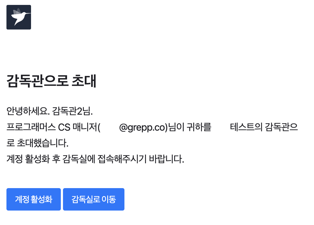 단, 감독관은 테스트를 생성/수정하거나 지원자 추가, 테스트 결과 확인은 불가능합니다.