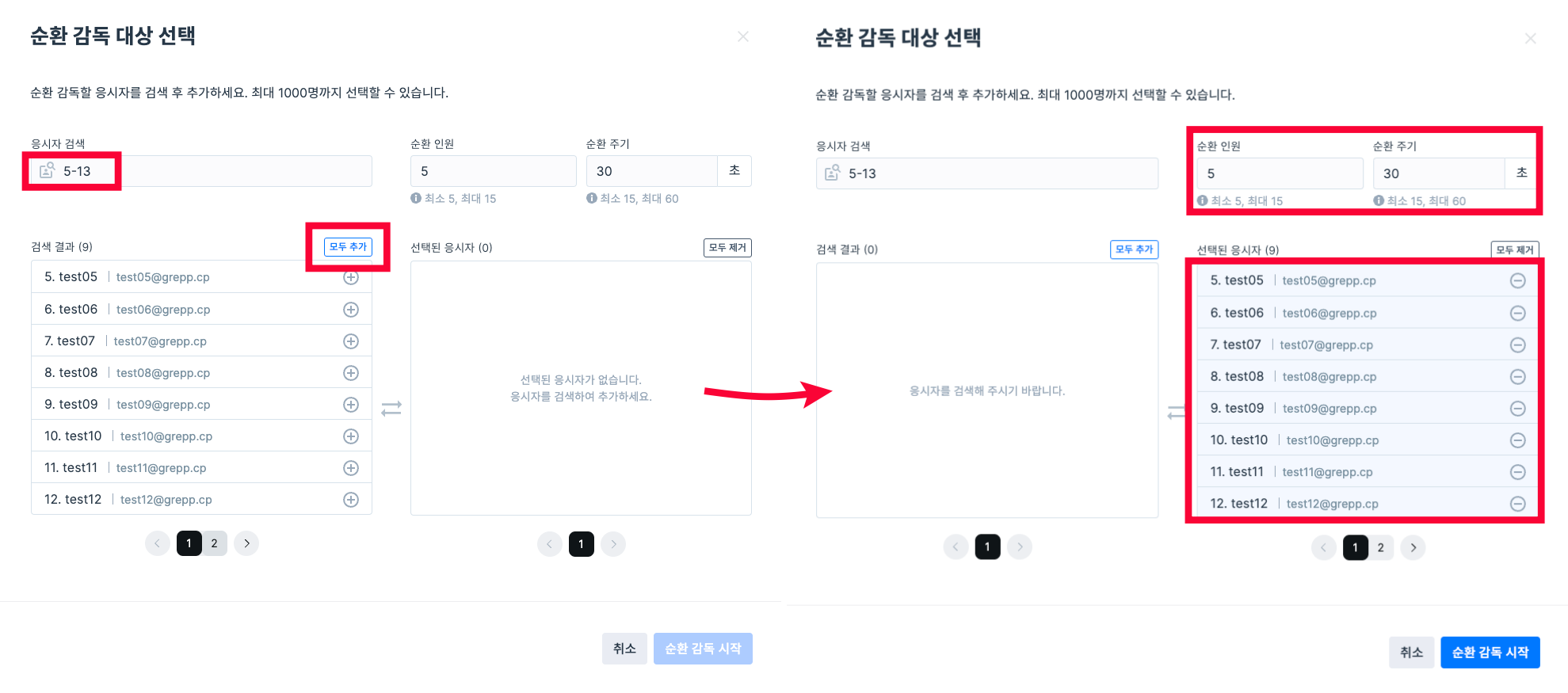 감독하는 응시자 검색 및 추가