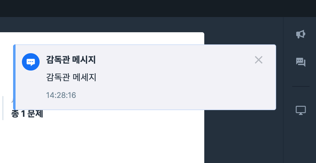 전송한 메세지는 응시자의 화면에서 배너 알림 형태로 보여집니다.