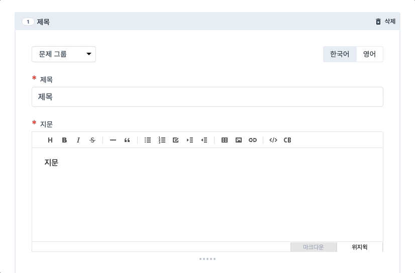 한국어/영어를 선택해 각 언어에 맞는 제목과 지문 등을 입력할 수 있습니다.