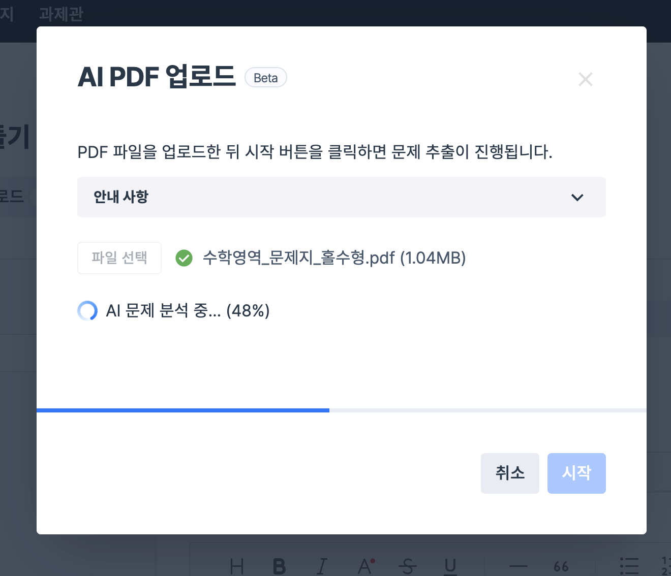 AI PDF 업로드에서 준비한 PDF 시험지를 업로드 합니다.