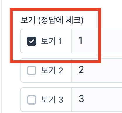 정답 보기를 체크합니다. 정답이 두 개 이상인 경우, 부분 점수 반영 옵션으로 부분 점수 적용 여부를 지정할 수 있습니다.