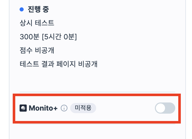 감독실에서 해당 응시자를 선택해 모니토+ 예외 응시 허용 기능을 활성화해주세요.