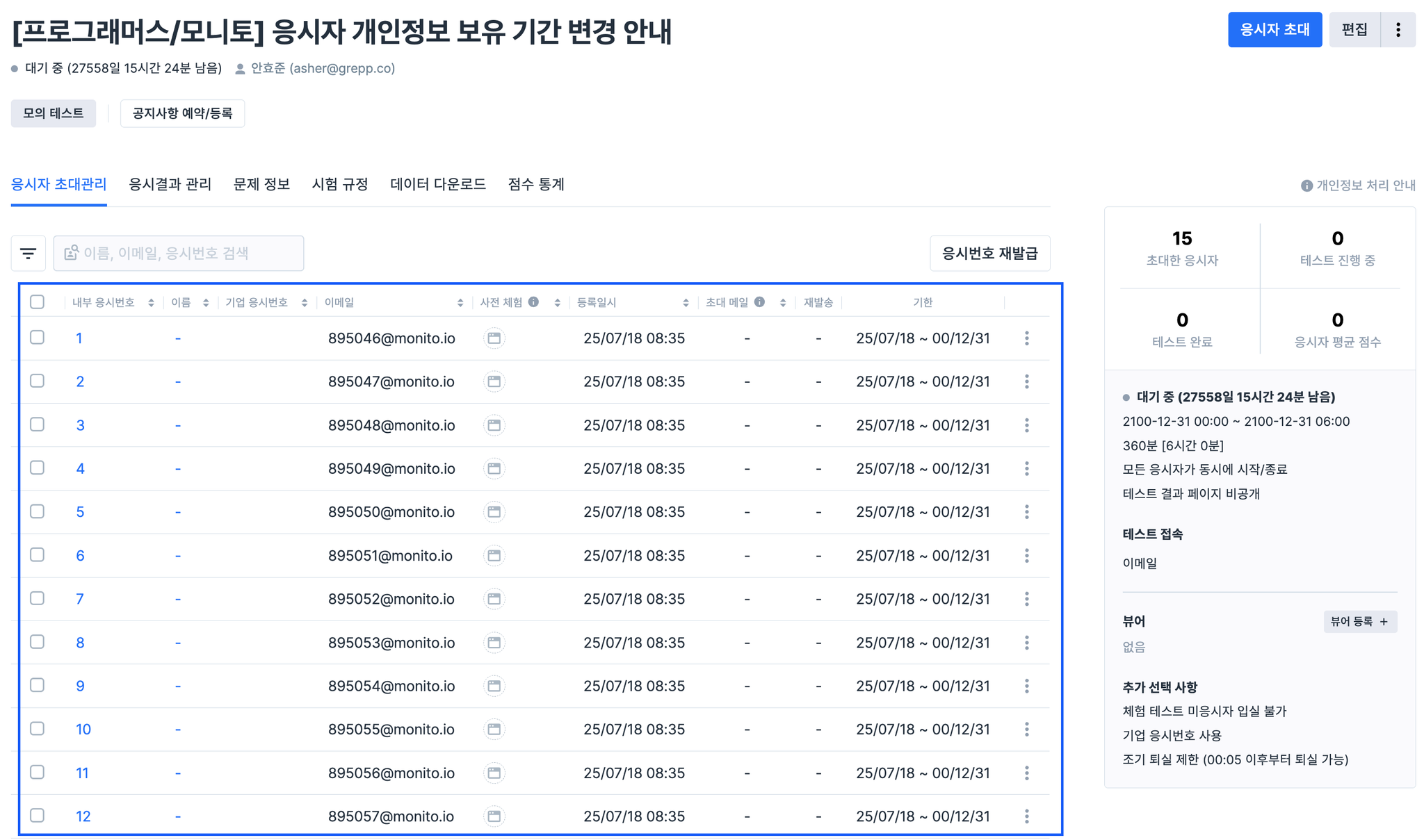 응시자의 개인정보를 2년 이상 보관하거나 활용할 필요가 있는 경우, 보관 기간 만료 전 별도 백업해 주시기를 권장드립니다.
