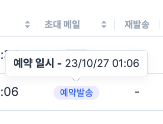 응시자 리스트-응시자 초대관리 탭에서 초대 메일 발송 상태와 예약 일시를 확인할 수 있습니다.