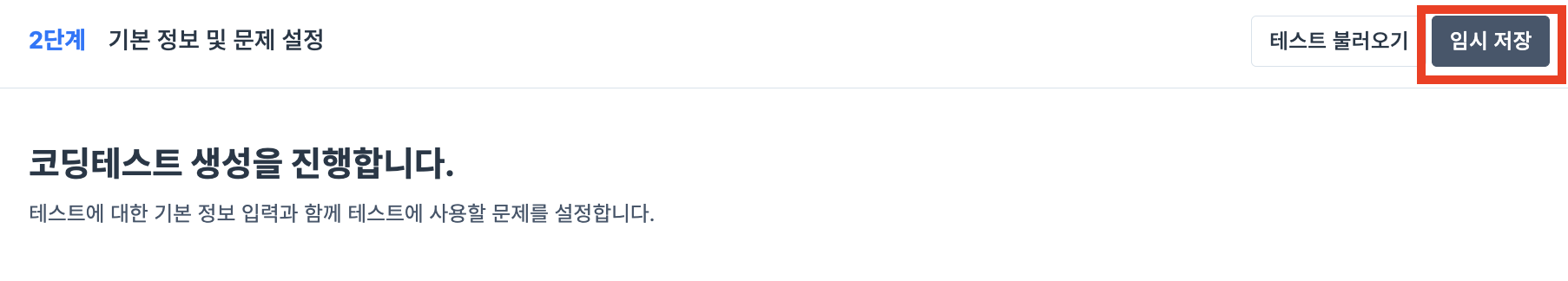 테스트 불러오기임시 저장 상태이거나, 이전에 운영했던 테스트를 불러올 수 있습니다.테스트 정렬 기준을 필요에 따라 변경할 수 있습니다자주 사용하는 테스트 구성을 템플릿처럼 불러와 재사용할 수 있어요.임시 저장테스트 생성 중 언제라도 임시 저장해두고, 언제든지 이어서 작성할 수 있습니다.팀 내부에서 검토나 협업 시 더욱 유연한 운영이 가능합니다.
