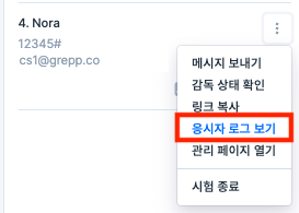 감독실 > 응시자 옆 점 세개 메뉴 > 응시자 로그 보기